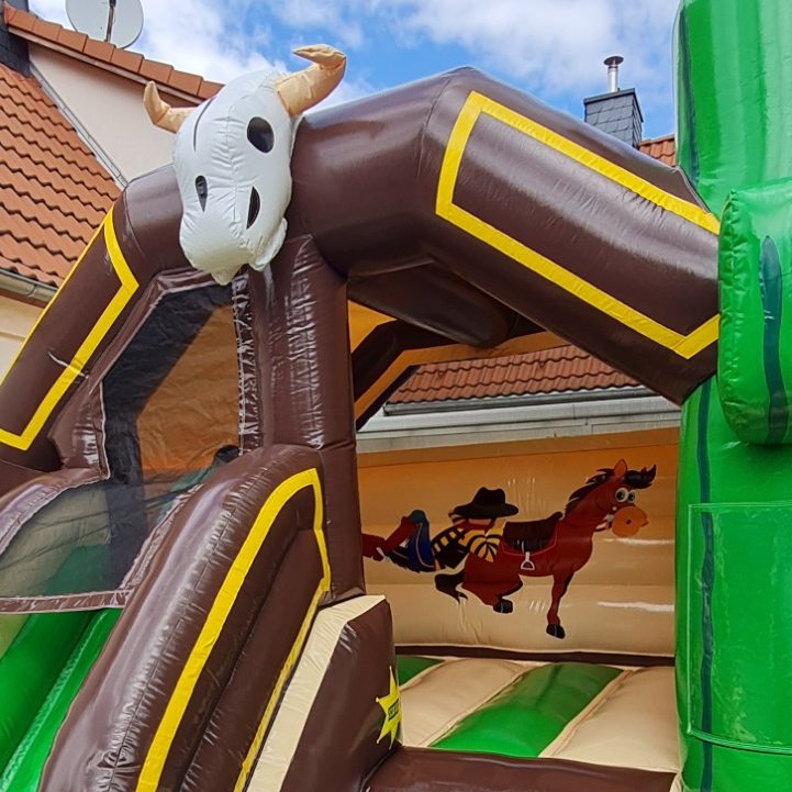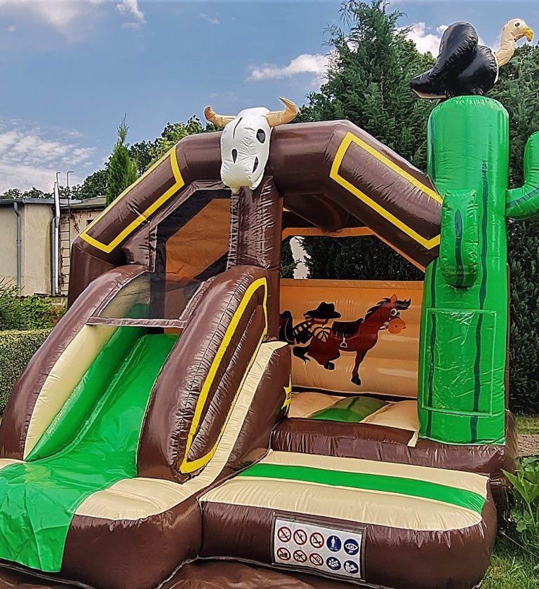 Rutschen und springen in einer lustigen Westernwelt: Mit der auffälligen Slide Combo Hüpfburg ist alles möglich. Aufgrund der lustigen 3D Figuren und den Kinderfreundlichen Animationen hat diese Hüpfburg eine extrem große Anziehungskraft bei Kindern. Diese Combo Slide Hüpfburg im Western Design hat alles, um eine perfekte Party zu feiern!